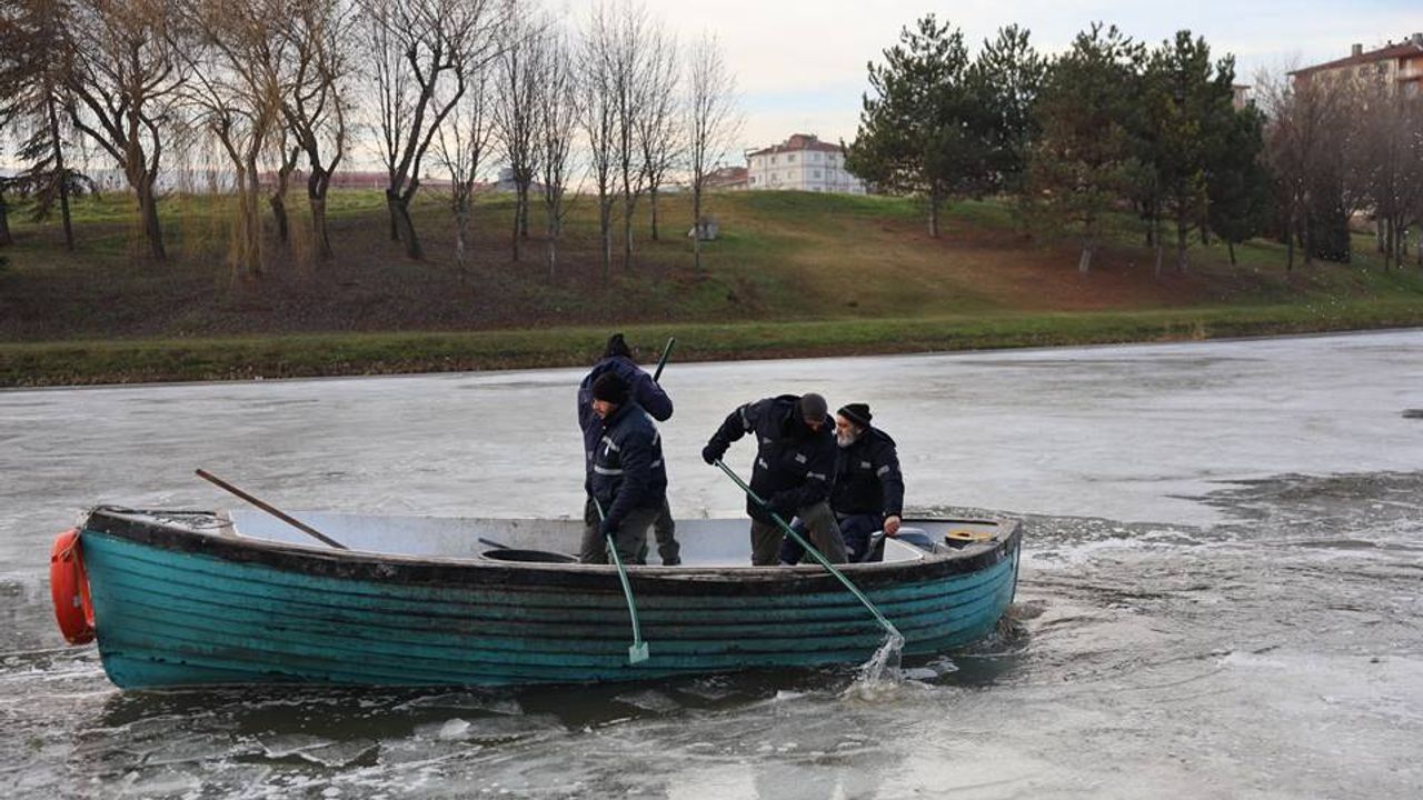 Buz tabakasının kalınlığının her noktada aynı olmadığını ve kolayca kırılabileceğini belirten belediye ekipleri, olası kazaların önüne geçmek için kollarını sıvadı. Porsuk Çayı ve yapay göletlerde buz kırma işlemleri aralıksız sürdürülüyor.
