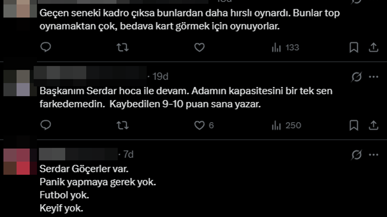 Taraftarlar, özellikle son haftalardaki oyun anlayışının yetersizliğine ve takımın hücum hattındaki etkisizliğine dikkat çekti. Sosyal medyada yapılan yüzlerce paylaşım arasında, yönetime ve Başkan Ulaş Entok’a yönelik tepkiler öne çıktı.
