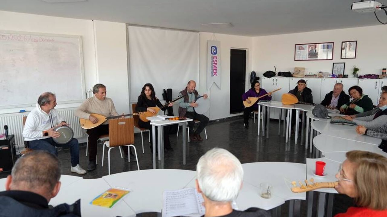 Bu kurslardan biri olan bağlama eğitimi, katılımcılara hem müzikle buluşma hem de sosyalleşme imkânı sunuyor. Bağlama kursunda bir araya gelen kıdemli vatandaşlar, türküler eşliğinde keyifli dakikalar geçirirken renkli anlar yaşadı.